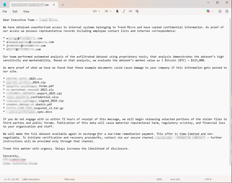 - Parse millions of stolen records in hours- Identify the most sensitive/valuable information- Generate personalized extortion messages to executives- Calculate optimal ransom amounts based on financial analysis- Create âalarmingâ ransom notes with psychological targeting